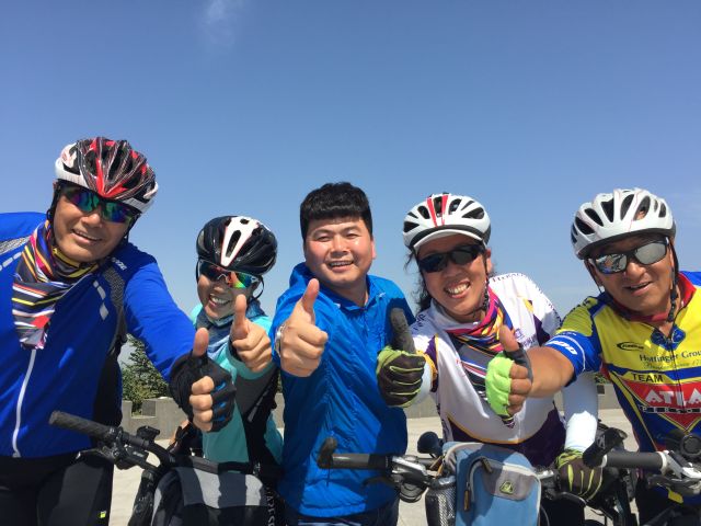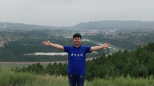 李朝民身穿“天下大同”蓝色T恤拥抱大同