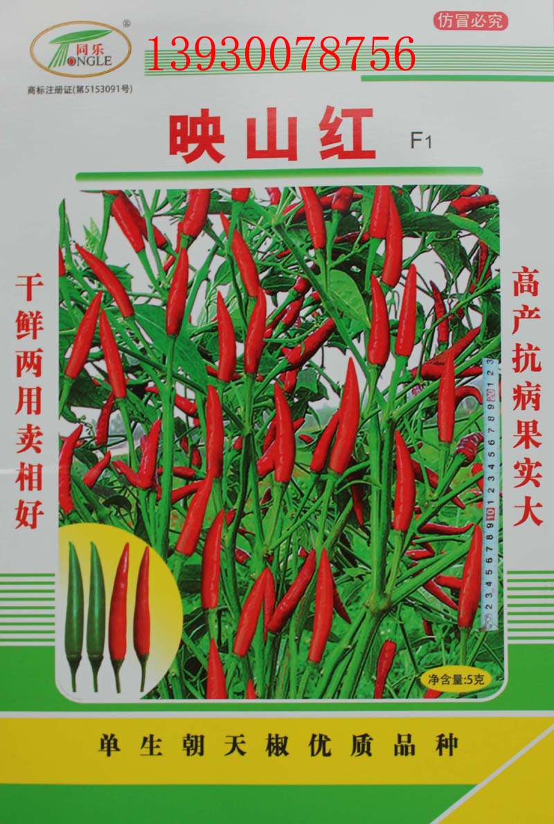 映山红朝天椒是中早熟一代杂交种,从韩国引进,单生果实朝上,植株茂盛,分枝多,座果力强,适应性广。果长9厘米左右,果径1厘米左右,椒形美观,味香辣,抗病性强,青果深绿,红果鲜红,可干鲜两用,商品价值高,易干制、不皱皮等优点深受椒农喜爱。