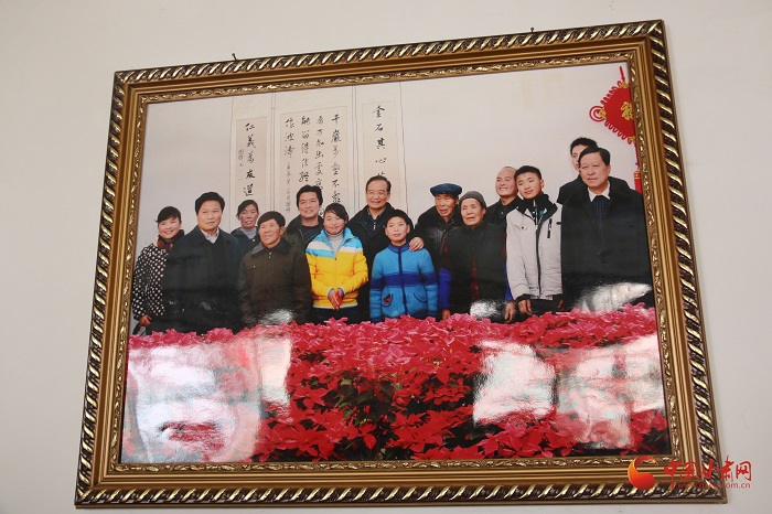 卯张辉家墙上挂着温家宝总理和全家人的合影
